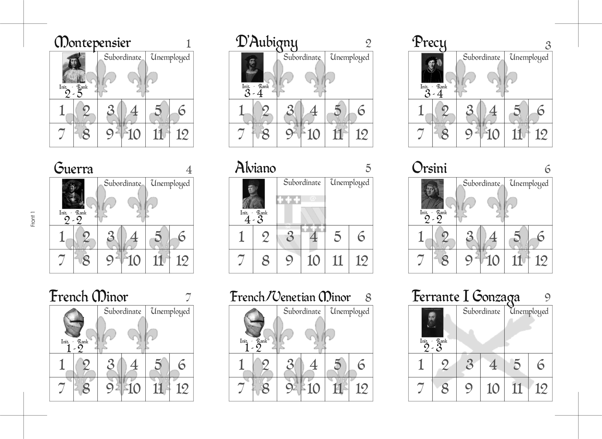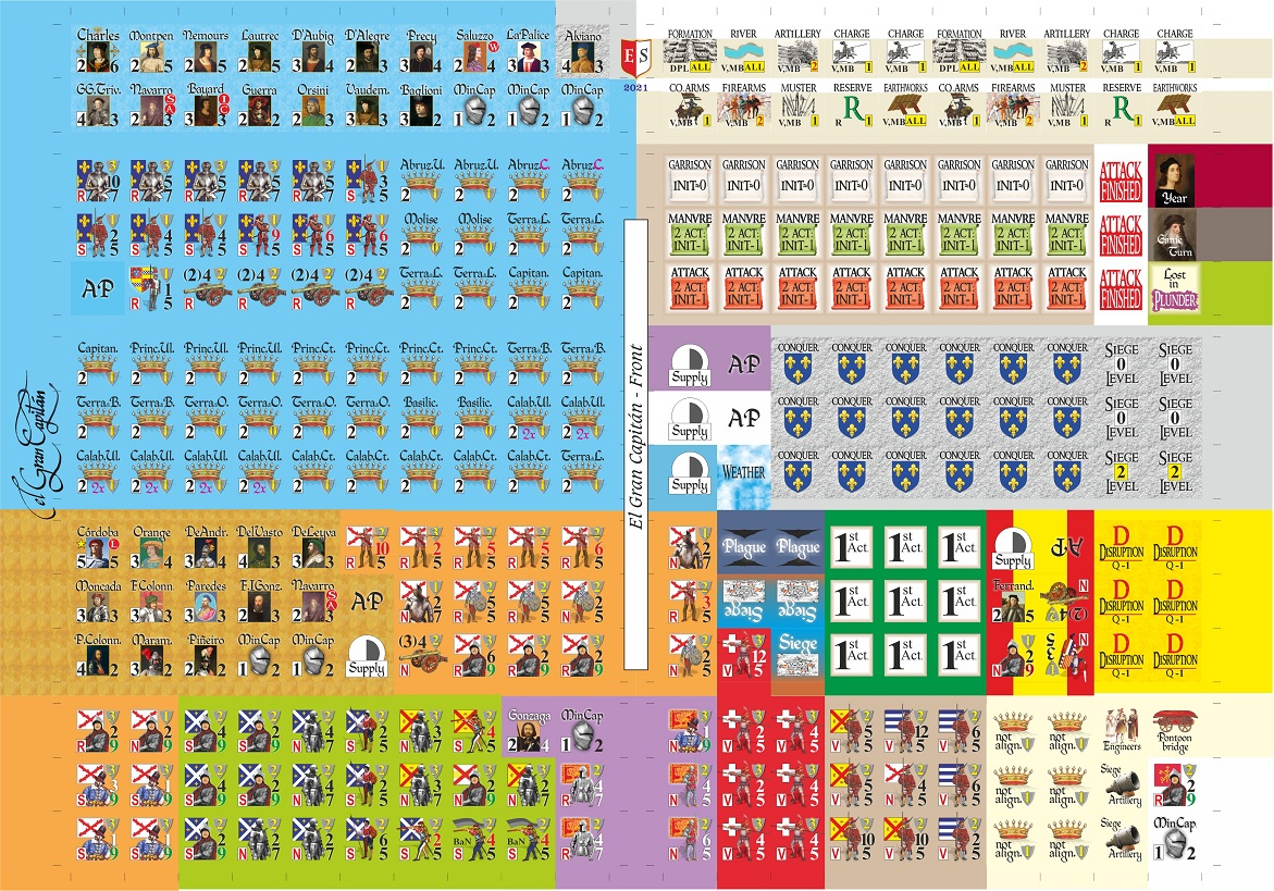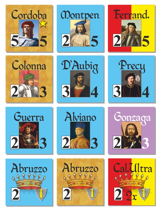 * gorgeous iconic counters representing all the main Capitani who fought there and the different combat units